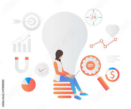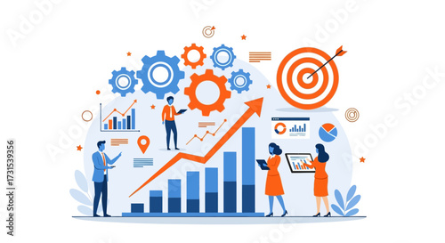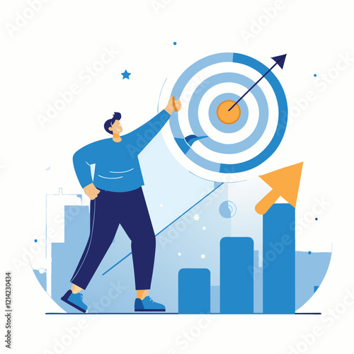 Достижение целей бизнесмена, финансовый рост, плоская векторная изометрическая иллюстрация. Мишень в виде магнита в форме подковы притягивает золотые монеты.