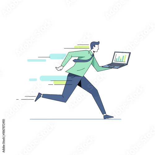Бизнесмен собирается на работу, векторная иллюстрация дизайна в плоском стиле. Молодой человек с чашкой кофе идет утром в офис. Бизнес-концепция для веб-баннера, страницы веб-сайта и т.д.