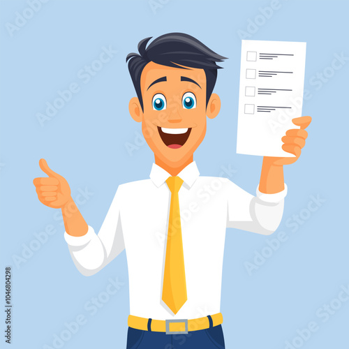 Бизнесмен, держащий наградной золотой кубок-трофей над головой, векторная иконка, изолированная на белом фоне.
