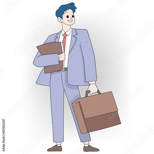 Бизнесмен в шлеме с векторной иконкой чемодана, изолированной на белом фоне.