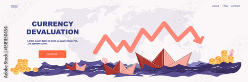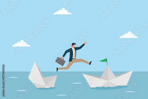 Бизнесмен в протекающем тонущем наборе персонажей мультфильма "Бумажный кораблик", векторная плоская изолированная иллюстрация. Банкротство бизнеса, финансовый кризис, крах бизнеса, экономический коллапс.