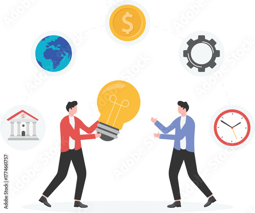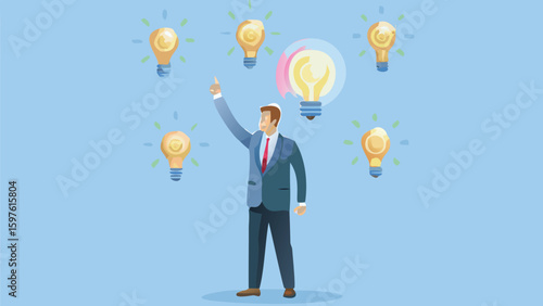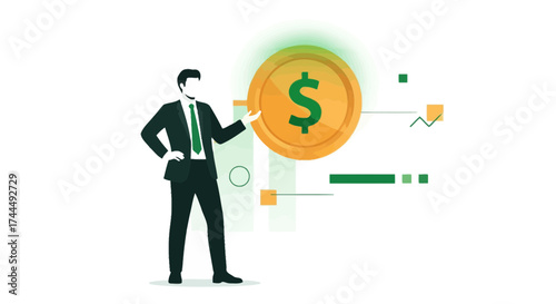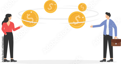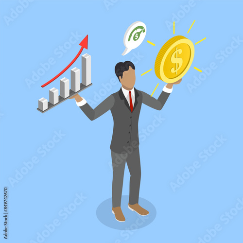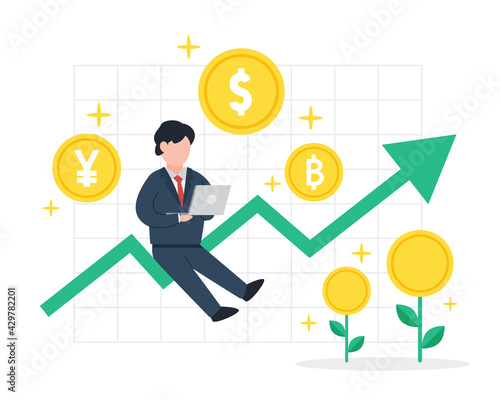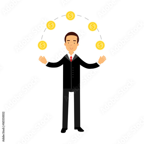 Векторная иллюстрация бизнесмена, жонглирующего золотыми монетами с символами резервной валюты доллар евро фунт и т.д. Элемент дизайна концепции бизнеса и финансов.