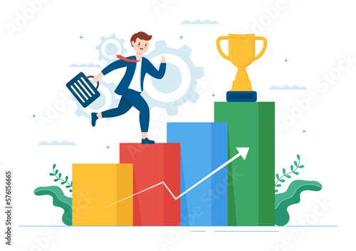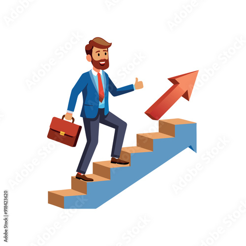 Бизнесмен, стремящийся к успеху и триумфу векторная иконка, изолированная на белом фоне