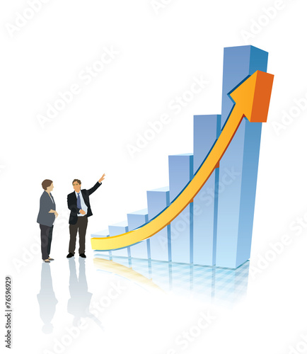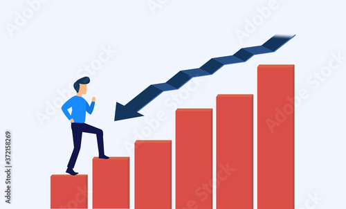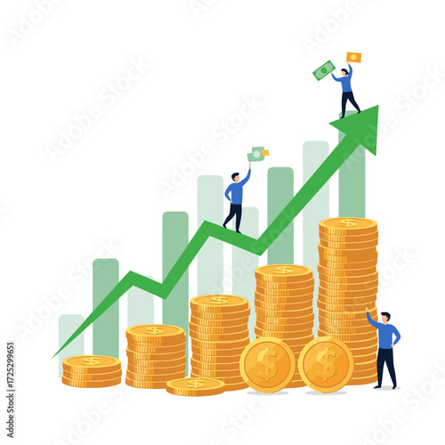 Бизнесмен, стоящий на вершине графика увеличения роста доходов, плоская векторная изометрическая иллюстрация. Увеличение продаж, доходов, рост прибыли.