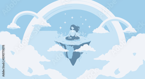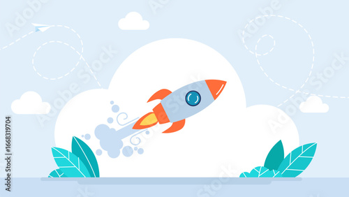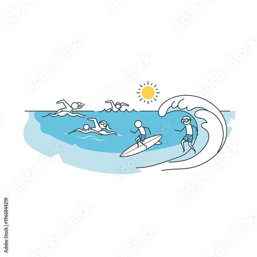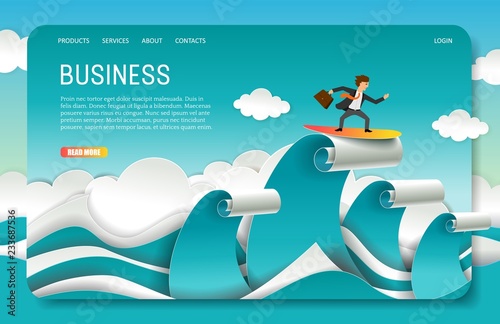 Молодой бизнесмен с портфелем остается на плаву и плывет по волнам перемен. Векторная иллюстрация в стиле бумажного искусства. Бросьте вызов бизнес-концепции.