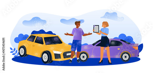 Бизнесмен с портфелем пытается поймать желтое такси, плоская векторная иллюстрация. Молодой человек бежит за машиной такси в часы пик. Офисный работник опаздывает на работу.