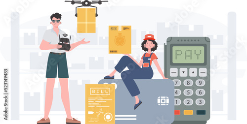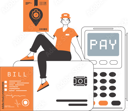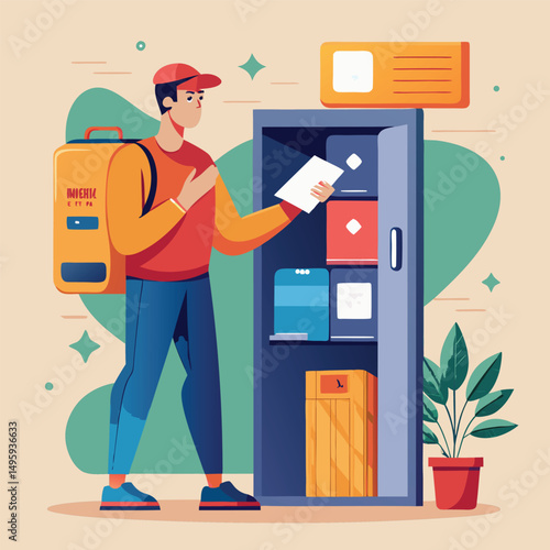 Бизнесмен с чашкой кофе, стоящий рядом с автоматом по продаже кофе, плоская векторная иллюстрация. Бизнес и обслуживание торговых автоматов.