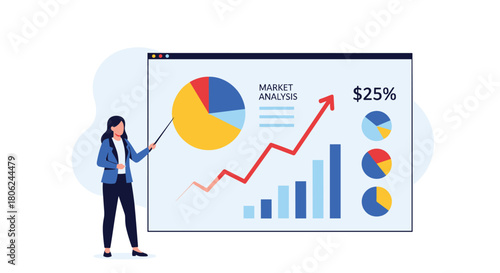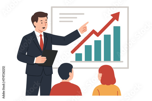 Бизнесмен смотрит в телескоп, стоя перед лестницей с кубком трофея на вершине, плоская векторная изометрическая иллюстрация. Путь к успеху, цель, видение бизнеса.
