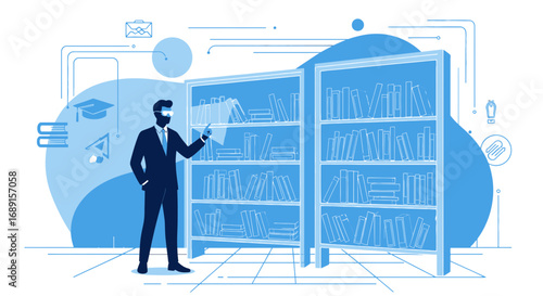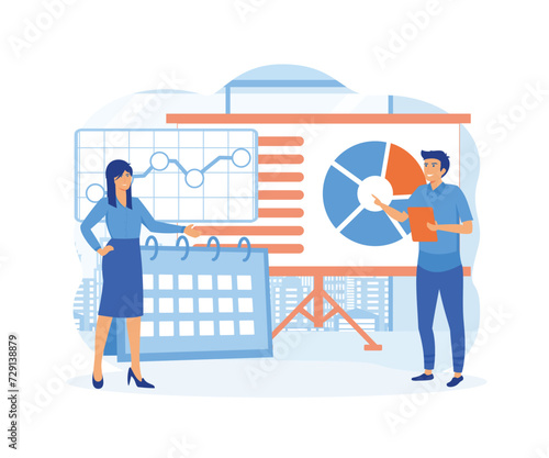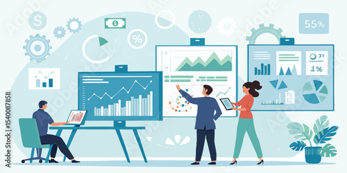 Векторная иллюстрация двух бизнесменов, пытающихся поймать лампочки крыльями и посадить их в клетку, как птиц.