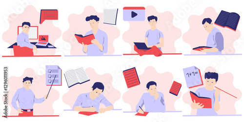 Искусственный интеллект в деловой обстановке. Бизнесмены взаимодействуют с векторной иллюстрацией искусственного интеллекта. Футуристический робот помогает сотрудникам создавать креативный образ, искать файлы, генерировать идеи