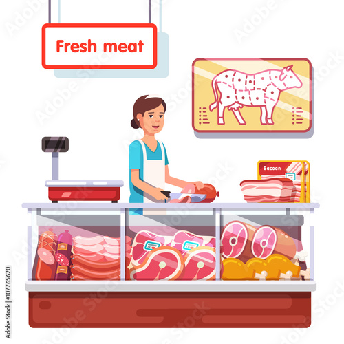 векторный значок витрины мясной лавки, изолированный на белом фоне