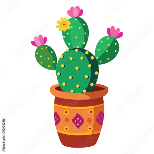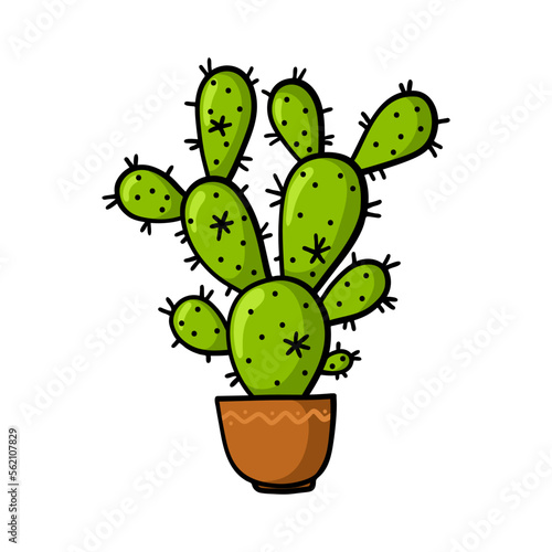 Кактус в векторном горшке для суккулентов на иллюстрации. Значок суккулентного цветка. Кактусы в горшке. Колючее комнатное растение для домашнего интерьера, изолированное на белом фоне