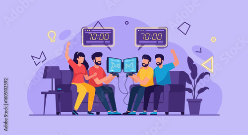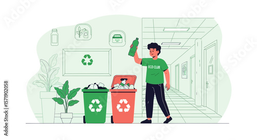 Векторная иллюстрация дизайна концепции кафе в плоском стиле. Вывеска кафе на большом здании с чайной чашкой, крошечные персонажи - посетители и официантка, подающая блюдо. Ресторанное питание, корпоративное питание и услуги кафетерия.