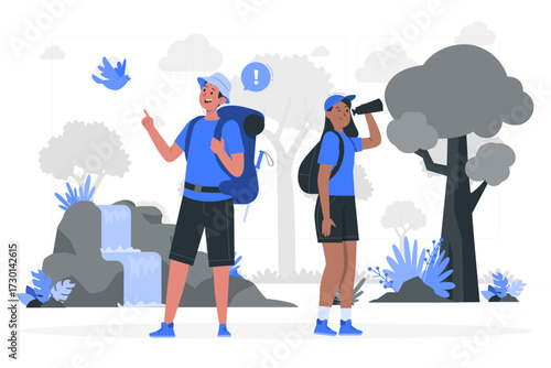 Кафе в горах. Счастливая пара пьет глинтвейн, плоская векторная иллюстрация. Молодой человек в шляпе Санта-Клауса и женщина празднуют Новый год и рождественские праздники за городом. Зимние каникулы.