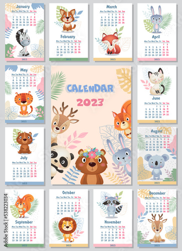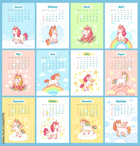 Векторный шаблон календаря на 2019 год. Годовой календарь, показывающий месяцы с милыми пиратскими животными, пиратскими аксессуарами и морскими предметами.
