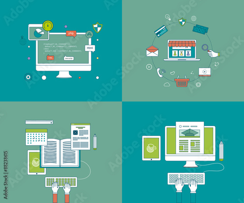 Векторный набор горизонтальных баннеров с лучшими элементами дизайна в плоском стиле для офиса, службы поддержки и колл-центра, веб-шаблонами.