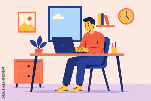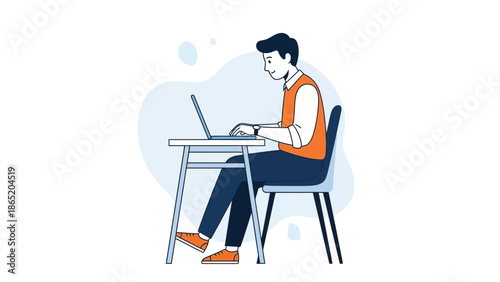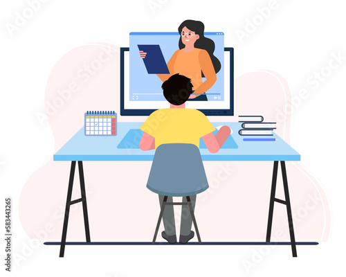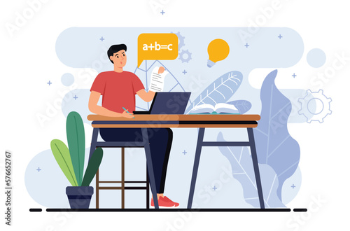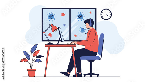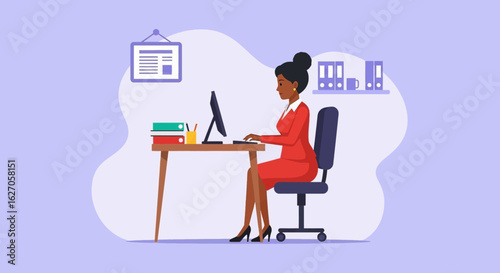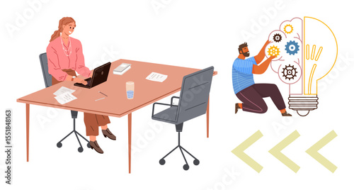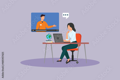 Женщина с гарнитурой работает на ноутбуке, сидя за столом. Векторная иллюстрация дизайна в плоском стиле, изолированная на белом фоне. Концепция службы доставки колл-центра для веб-баннера, страницы веб-сайта и т.д.