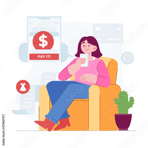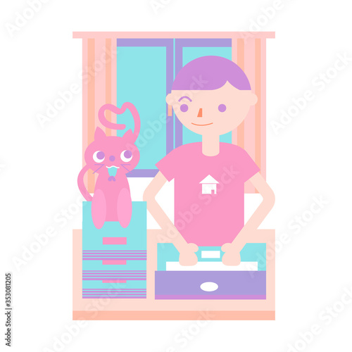 Оператор колл - центра использует гарнитуру для разговора по телефону. Векторная иллюстрация концепции обслуживания клиентов. Офисный стол с компьютером, онлайн-звонок, видеоконференция и вебинар.