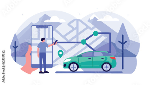Векторная иллюстрация дизайна в плоском стиле для путешествий в кемпере. Кемпинг на колесах, концепция летнего отдыха с прицепом для кемпинга и персонажами для веб-баннера, страницы веб-сайта и т.д.