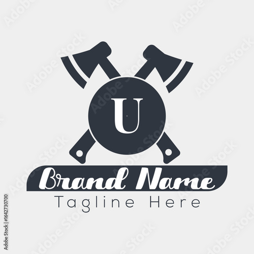 Векторный винтажный логотип "Кемпинг и дикие приключения". Скрещенный топор и костер на фоне горного пейзажа, выделенные на белом фоне. Значок "Летнее путешествие на природе".