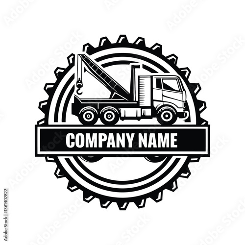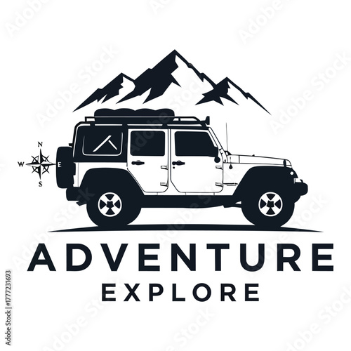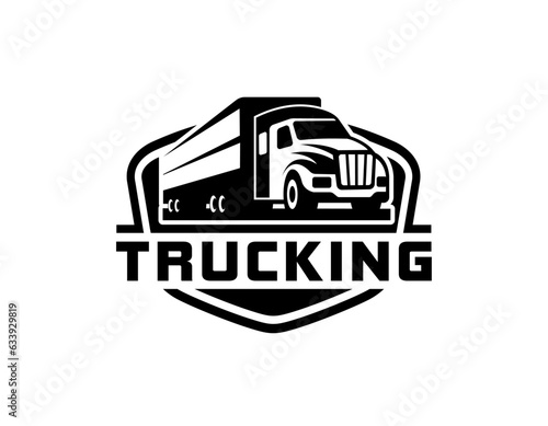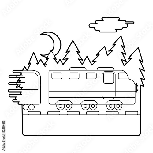 Винтажный векторный логотип Camping time. Путешествие по горам на ретро-значке автобуса с прицепом, выделенном на белом фоне. Приключения на свежем воздухе, повторение летнего отдыха и экспедиции в горной местности