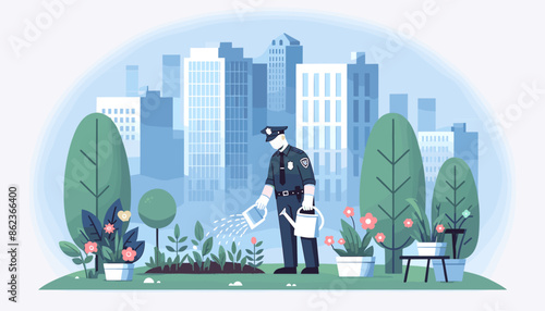 Автомобильная авария на дороге, плоская векторная иллюстрация. Полицейский разговаривает с женщиной-водителем, которая врезалась на своей машине в светофор.