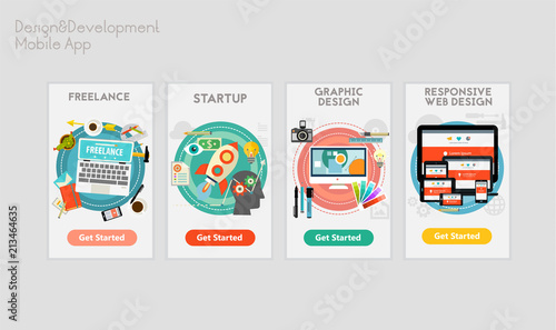 Поломка автомобиля. Женщина-водитель чинит сломанную машину. Запасное колесо, ящик с инструментами. Экраны для мобильных приложений. Векторный шаблон баннера для разработки веб-сайтов и мобильных устройств. Иллюстрация дизайна веб-сайта и пользовательского интерфейса.