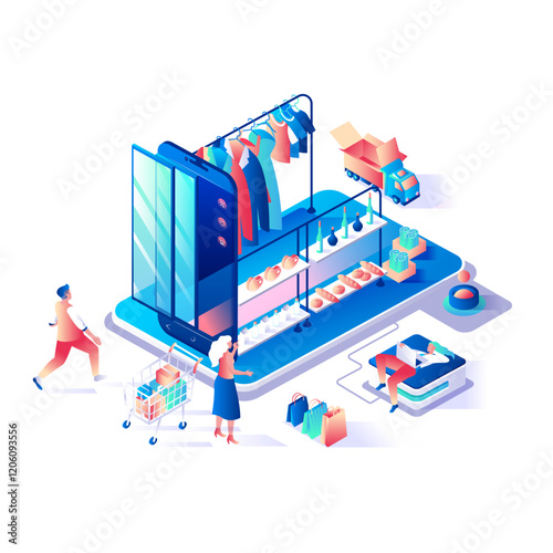 Автомобиль онлайн векторная иллюстрация. 3d изометрические автомобили на клавиатуре ноутбука. Интернет-магазины, элементы дизайна концепции электронной коммерции, выделенные на белом фоне.