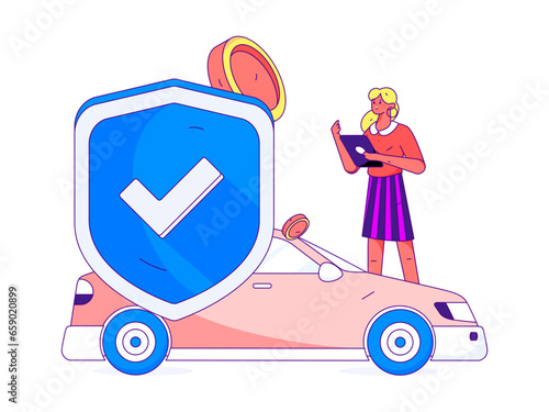 Услуги автомобильного ломбарда, плоская векторная иллюстрация. Клиент получает деньги в обмен на ключи от машины. Ссуда в ломбарде.