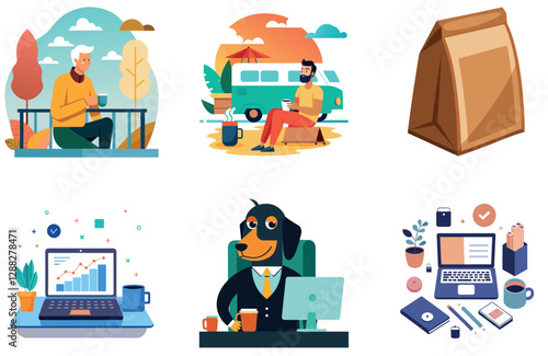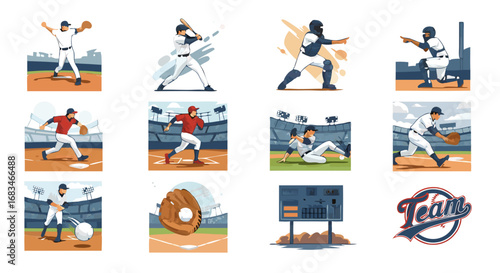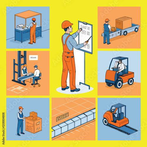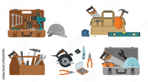 Автосервис и гараж автомеханика. Набор мультяшных векторных плакатов. Мастерская по тюнингу автомобилей. Инструменты для ремонта автомобилей. Мужчина чинит сломанную машину и меняет колеса и масло.