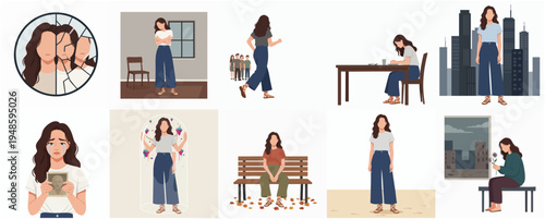 Автосервис и гараж автомеханика. Набор мультяшных векторных плакатов. Мужчина чинит сломанную машину и меняет шины и масло. Мастерская по тюнингу автомобилей. Механик разговаривает с клиентом.