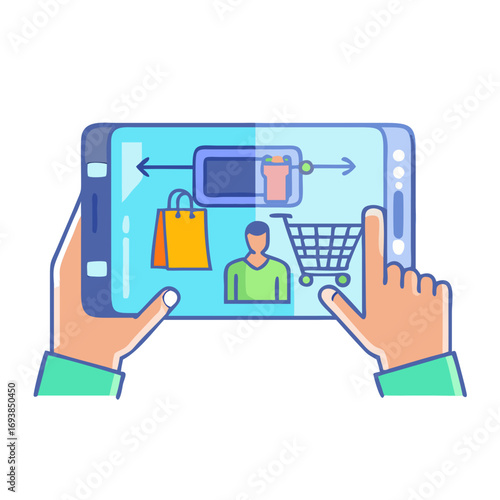 Шаблон векторного веб-баннера для каршеринга. Смартфон в руке человека, изометрические автомобили в аренду на парковке и человек с мобильным телефоном перед ними. Услуга Carpooling, концепция мобильного приложения для совместного использования автомобилей.