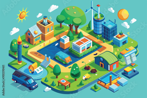 Автомобильные путешествия и кемпинг - изометрическая концепция. Векторная иллюстрация в плоском 3d-стиле. Деятельность в лагере на открытом воздухе. Путешествие на кемпере.