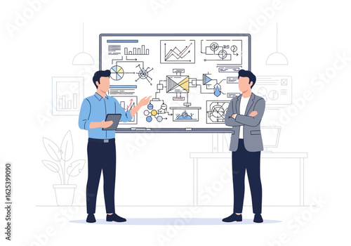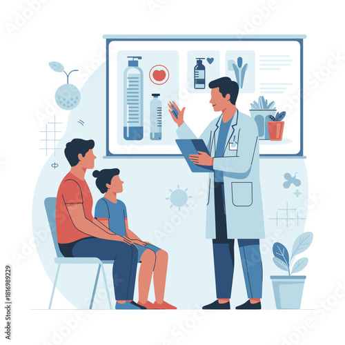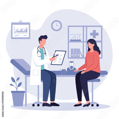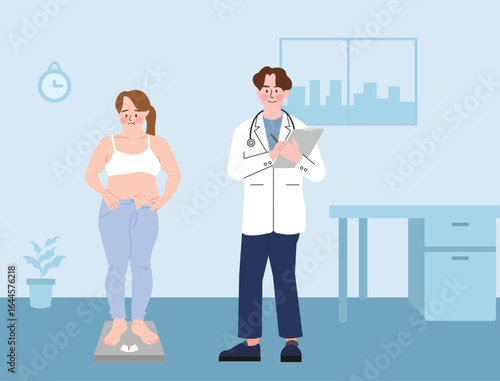 Векторная иллюстрация кардиоуправления. Пациент тренирует сердечно-сосудистую систему, бегая на беговой дорожке, в то время как врач следит за показателями здоровья. Концепция кардиологии и медицины