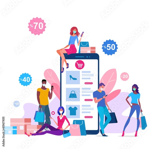 Иллюстрация векторной концепции сервиса каршеринга. Люди, использующие мобильное приложение для обмена автомобилями, чтобы арендовать автомобиль. Carpooling, концепция онлайн-проката автомобилей для веб-баннера, страницы веб-сайта и т.д.