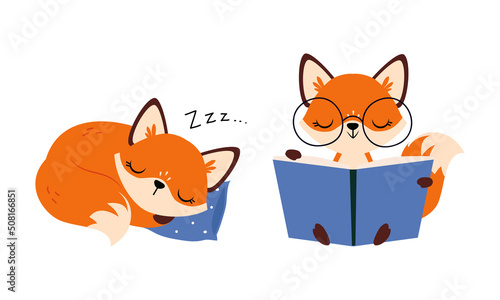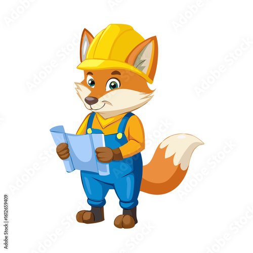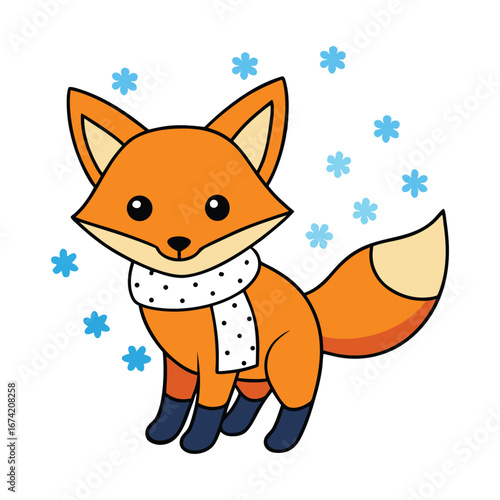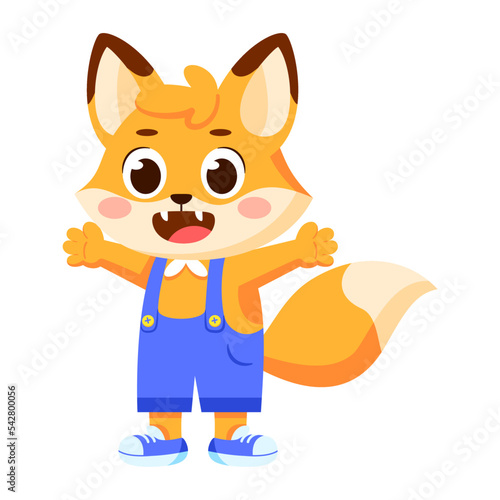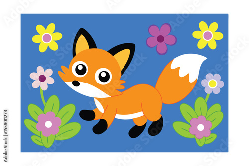 Вектор с мультяшной лисой. Значок милого животного. Персонаж из красного леса поливает весенний цветок с помощью изолированной иллюстрации из банки на белом фоне