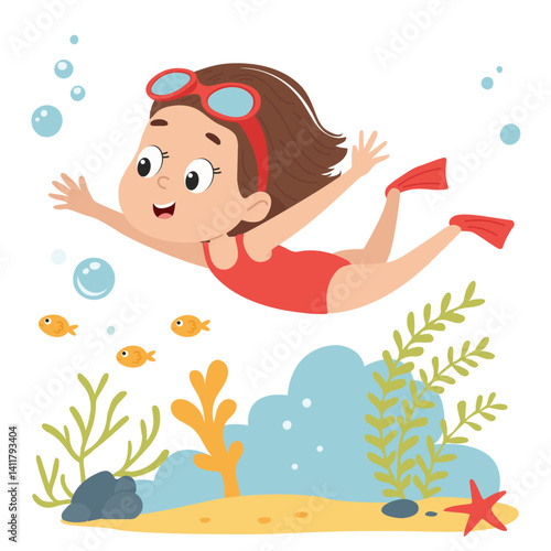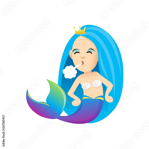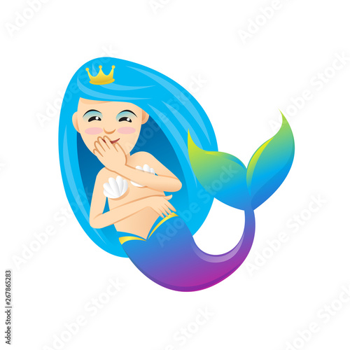 Мультяшная русалочка в векторе. Иллюстрация со значком милой девушки. Маленький персонаж морской сказки, изолированный на белом фоне