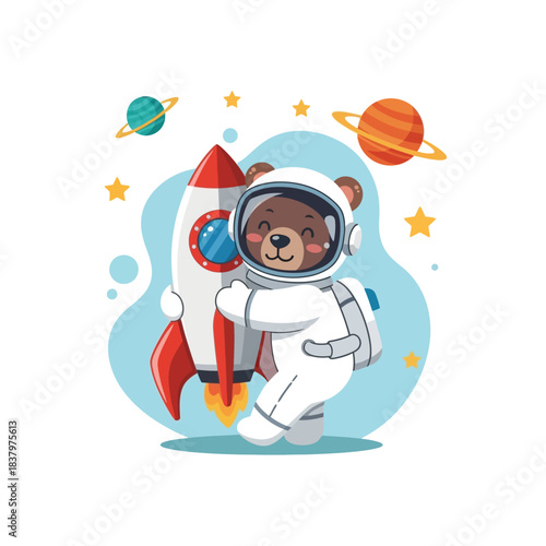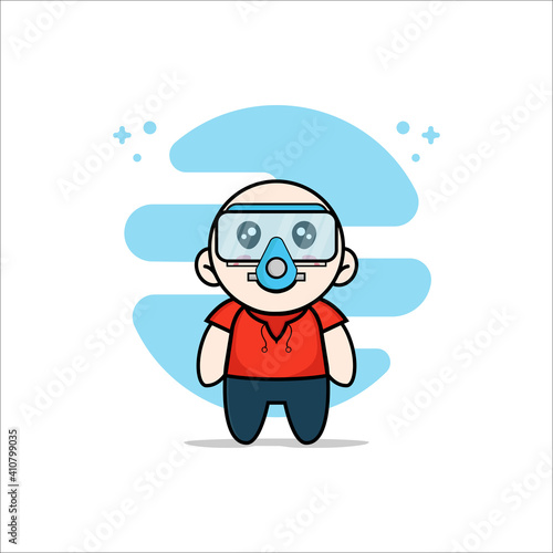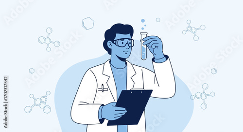 Мультяшный ученый с колбой. Векторная иллюстрация. Наука для детей.