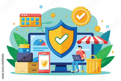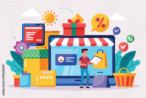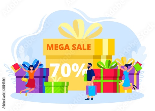 Счастливые люди, получающие возврат денег за онлайн-покупки в интернет-магазине, плоская векторная иллюстрация. Бонус за возврат наличных по кредитной карте. Поощрения за кэшбэк, программы лояльности клиентов.