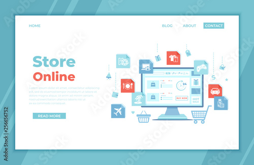 Векторный шаблон веб-сайта казино онлайн, дизайн веб-страницы и целевой страницы для разработки веб-сайтов и мобильных сайтов. Интернет-игровой автомат на экране портативного компьютера, персонажи выигрывают джекпот.