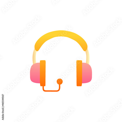 Вектор кошачьего диджея. Милый котенок-персонаж в наушниках, стоящий у консоли и воспроизводящий мелодию, значок, выделенный на белом фоне