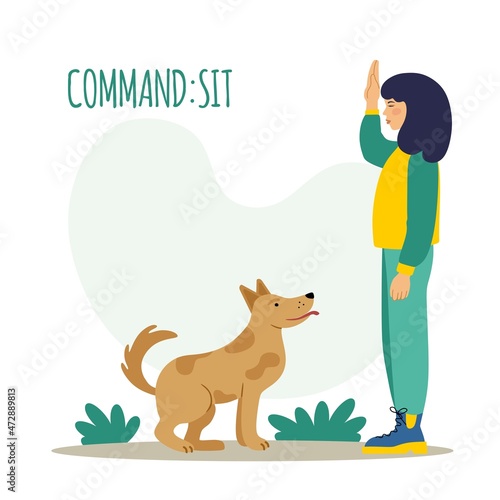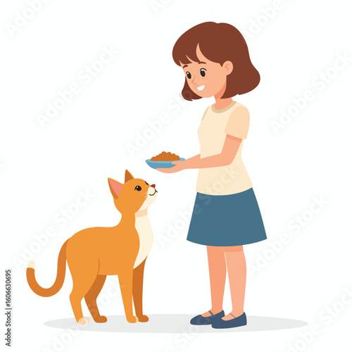 Векторная иллюстрация женщины, играющей с кошкой. Владелец домашнего животного и ее котенок элемент дизайна в плоском стиле, значок, выделенный на белом фоне.