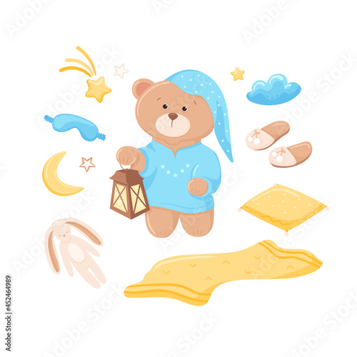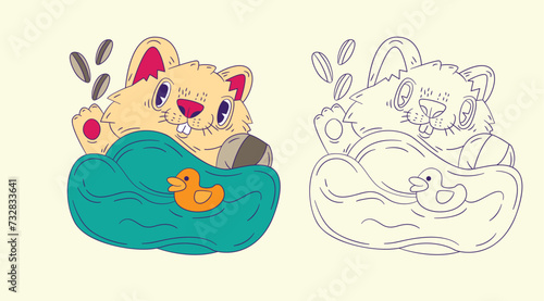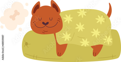 Векторная иллюстрация кошки. Милый мультяшный персонаж котенок, спящий на подушке. Сонный забавный дремлющий питомец, изолированный на белом фоне
