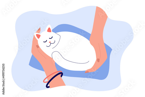 Кот умывается, сидя на подушке, векторная иконка изолирована на белом фоне.