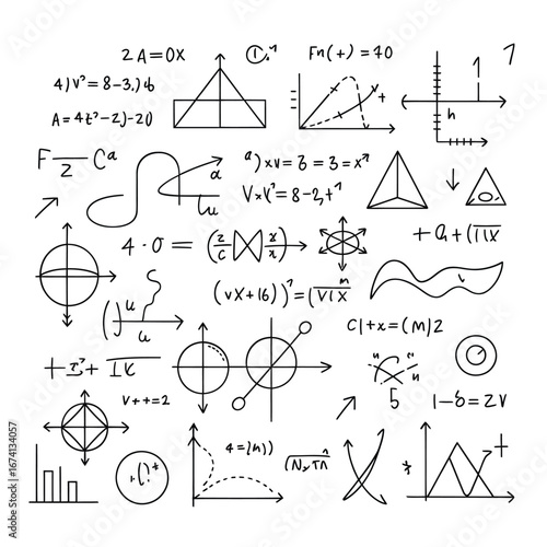 Эффект рисования мелом. Математические формулы и графики на белом фоне. Бесшовный узор. Векторная иллюстрация.