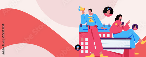 Пузырьки сообщений чата и люди, общающиеся онлайн, пьющие кофе, вино, плоская векторная иллюстрация. Речевой пузырь, комментарии. Диалог. Онлайн-свидание. Технологии обмена сообщениями в чате.