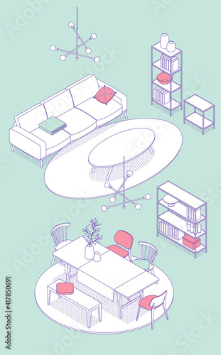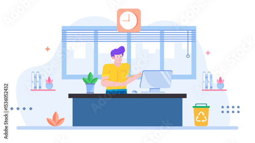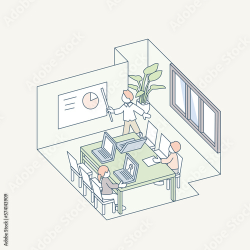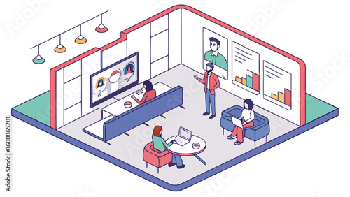 Концепция интеллектуального сервиса чат-бота. Векторная изометрическая иллюстрация человека, общающегося с роботом-интернет-ботом во время использования ноутбука.