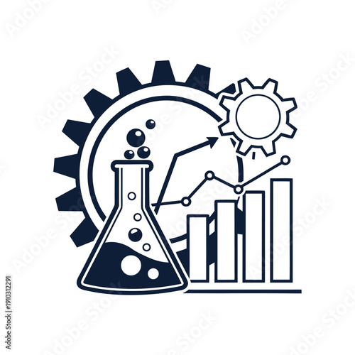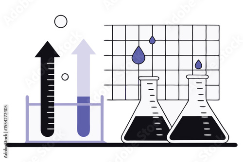 Шаблон баннера плаката химической промышленности. Векторная иллюстрация в стиле бумажного искусства. Трубы химического завода с огромным облаком кислоты внутри колбы химической лаборатории.