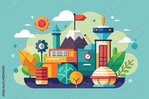 Векторная иллюстрация дизайна в плоском стиле шеф-повара. Поварской колпак, сковорода, кастрюля, кухонные ножи, духовка и прихватки. Концепция посуды для веб-баннера, страницы веб-сайта и т.д.