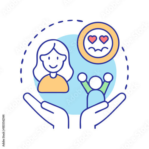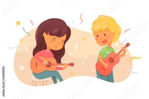 Вектор детских страхов. Иллюстрация маленького мальчика, боящегося клоунов. Милый ребенок плачет, испугавшись жуткого лица арлекинов. Детская фобия и ночной кошмар